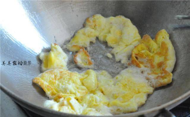 油锅烧热,将打散的鸡蛋液倒入锅中,煎成鸡蛋饼,捞出备用。