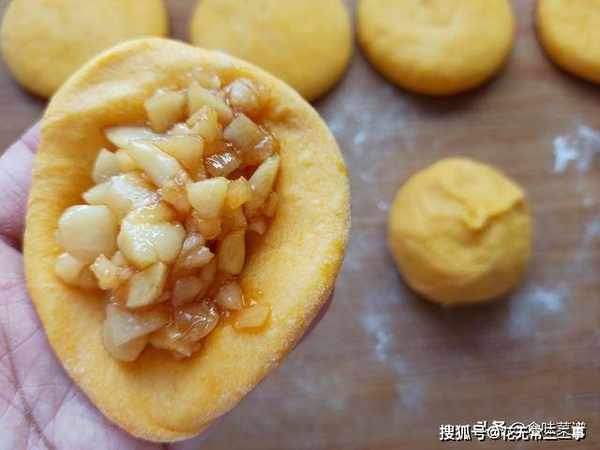 11、一道好吃的南瓜山药饼就做好了,山药健脾养胃,南瓜富含膳食纤维,还能增加免疫力,吃起来外酥内暄,加上炒香的馅料,实在太美味了,尤其小朋友最爱吃。