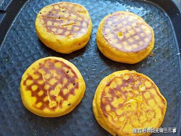 10、翻到另外一面,在烙2分钟,中间多翻动几次,让饼受热均匀,等两面变成金黄色,按压有弹性,即可出锅开吃。