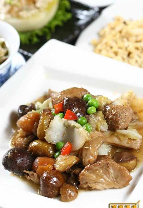 【猴头菇焖白菜】食材:猴头菇300克、白菜150g、香菇7朵、冷冻红萝卜6颗、冷冻栗子7粒、青豆少许、高汤1大匙。调味料:酱油1大匙、香菇粉1小匙、胡椒粉1小匙
