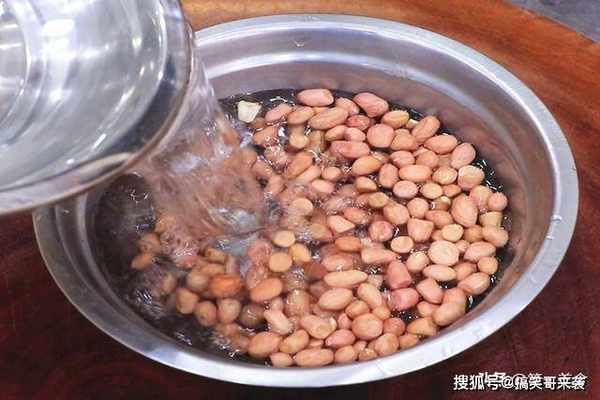 1、准备适量的花生米,提前用清水浸泡两个小时,让花生米吸水膨胀这样吃着更脆。