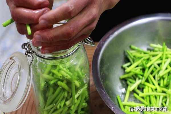 蒜苔腌制时一定要保证无水无油,否则容易变质。
