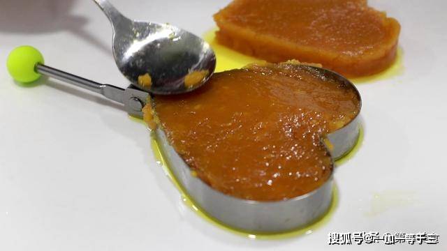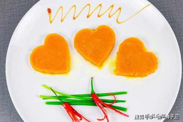 5.我们再做一个爱心形状,红薯泥是河南开封名小吃,这道菜,色泽鲜艳,甜爽可口,营养丰富,这样很漂亮的一道爱心红薯泥就做出来了。