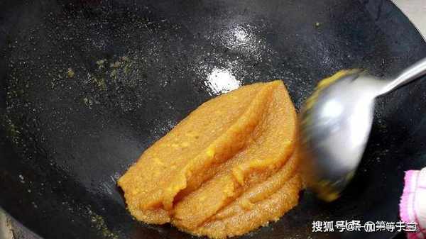 4.做这道菜要不停的翻炒,把红薯泥炒透炒香炒浓,翻炒这个过程要3分钟时间,就可以出锅了。