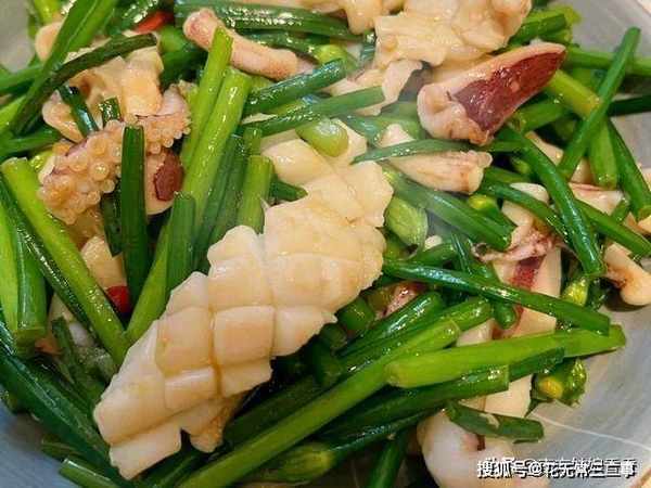 鱿鱼,韭菜花,蒜末,小米辣,蚝油,生抽,料酒。