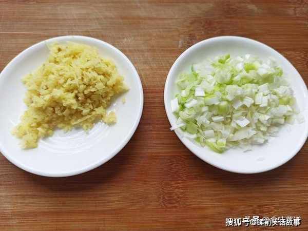 4、准备大葱半根,先切成段,最后切成碎末,生姜也切成碎末。