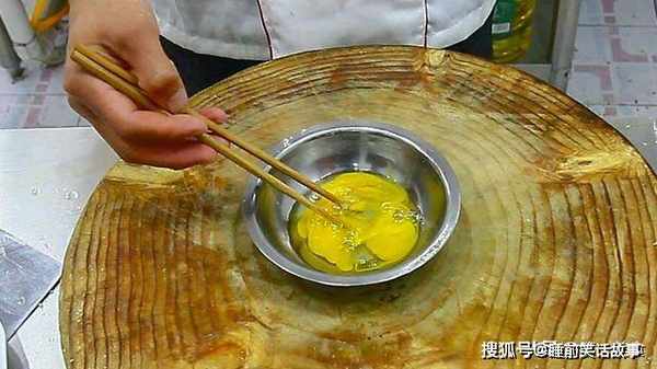 准备一个小盆,打入一个鸡蛋,用筷子打散,鸡蛋是为了给馒头上色好看。