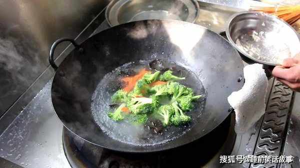 锅内加入适量的清水,加入少许植物油,水烧开以后,把西兰花、胡萝卜、木耳倒入锅中,焯水一分钟左右,食材断生后倒出,用清水冲洗晾凉。