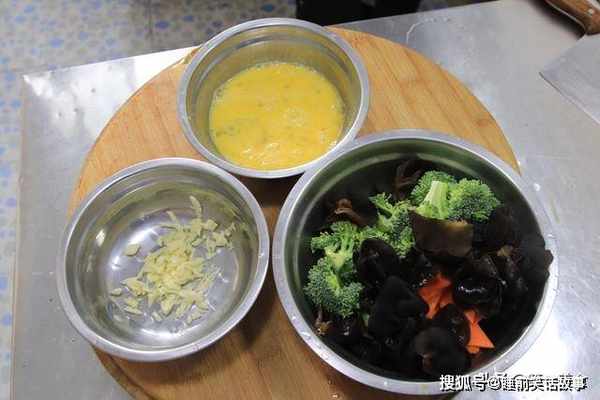 把控干水分的西兰花木耳胡萝卜倒入盆中,加入切好的蒜末,加入食盐2克、味精1克、白糖少许、生抽5克、陈醋3克、香油5克、最后倒入炒好的鸡蛋,颠盆拌匀后即可装盘。