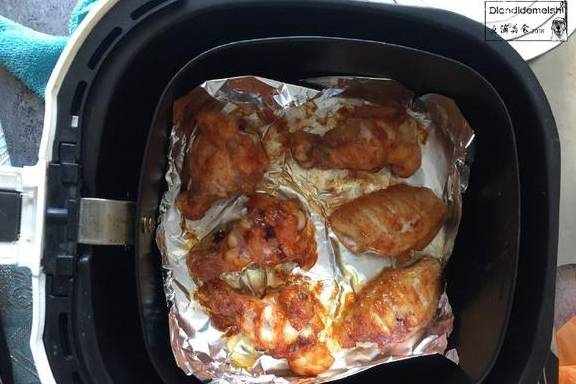 两面分别烤10分钟,受热更均匀;锡纸垫一下,这样基本不用清洗空气炸锅了;最后刷蜂蜜,是为了口感更加,自行选择。用空气炸锅炸鸡翅膀,全程不用一滴油,好吃又健康。