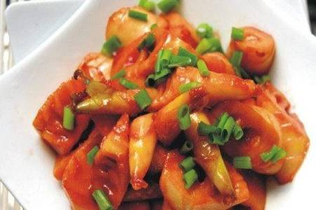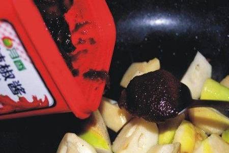另起油锅倒入笋翻炒,加入料酒、辣椒酱、糖和盐翻炒至浓稠。