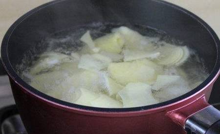 煮锅里水烧开,下笋块煮开,然后捞出。