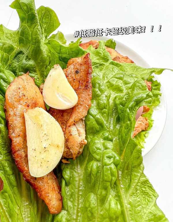 3、煎好鸡胸肉捞出,留下的底油爆香蒜片,碗里先铺好一层生菜再放好鸡胸肉和爆香的蒜片,用生菜包着吃,解腻又满足,既有鸡肉的香嫩,又有生菜的清脆爽口。另外鸡腿肉的做法也可以按照今天的做法去做。比起鸡胸肉,鸡腿肉更嫩。