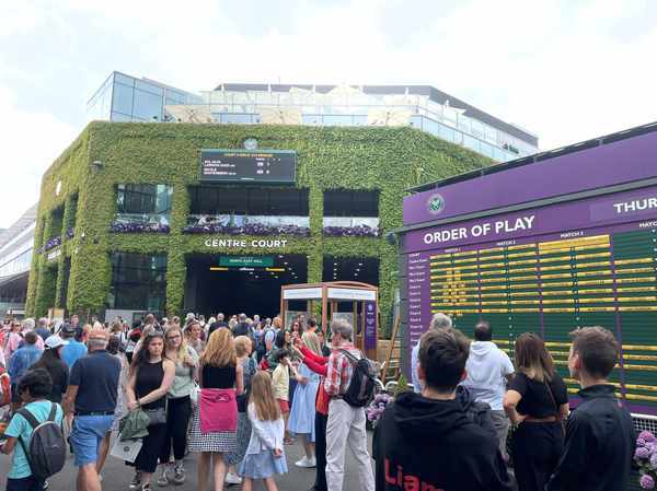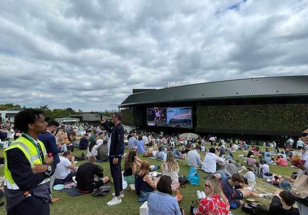 到了球场,大家排队,掏出手机,都一早在网上登记购了票的。经询问,得知现场购票要绕很大圈到温布尔登公园的临时购票点,即使再远也不放弃。20镑一张票,觉得还很便宜,没被宰。但到了场地内才知道,这个票就是比赛场外的参访票,不能进入主场观看比赛。想想也是,门槛这么低,那得多少人入场?
