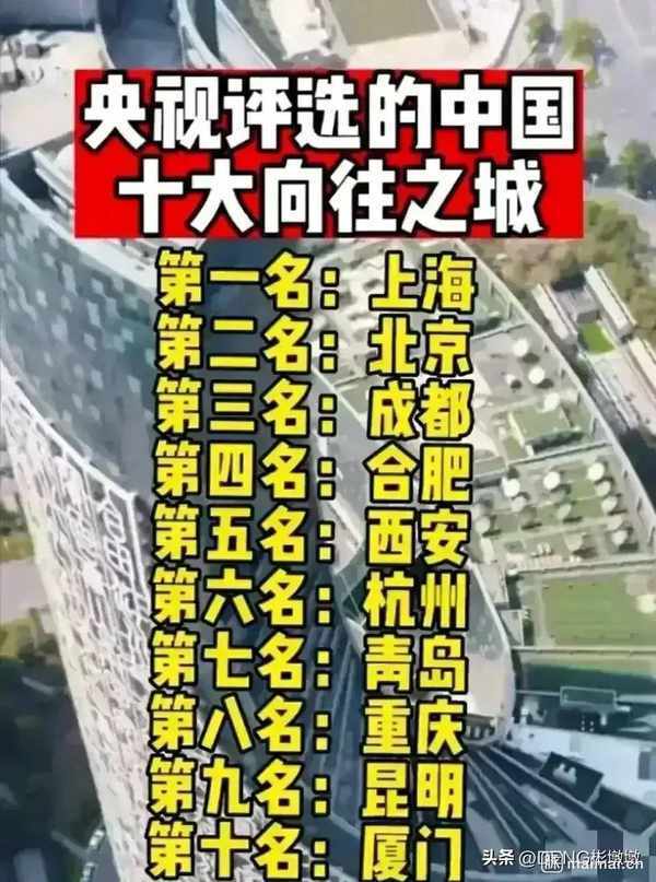 【央视评选的中国十大向往之城】 这十大向往之城,你去过几个地方?这十大向往之城,真的值得向往吗? 首先我来回答上面的第一个问题,这十大向往之城,我只去过五个,剩下的五个城市我没去过的包括:成都、青岛、重庆、昆明、厦门。 其次,第二个问题我不多做评说,留给你们各自去感受意会或体验。 个人认为,咱中国的大好河山,疆域辽阔,向往之城,应该是远不止如此!每个城市都值得我们探寻向往! 比如,我就特向往内蒙古大草原,新疆、延边、海南、厦门、昆明,远离城市喧嚣,观各种民族风情! 天大地大,祖国处处是我们的家!天南海北,中国之城咱们都向往!