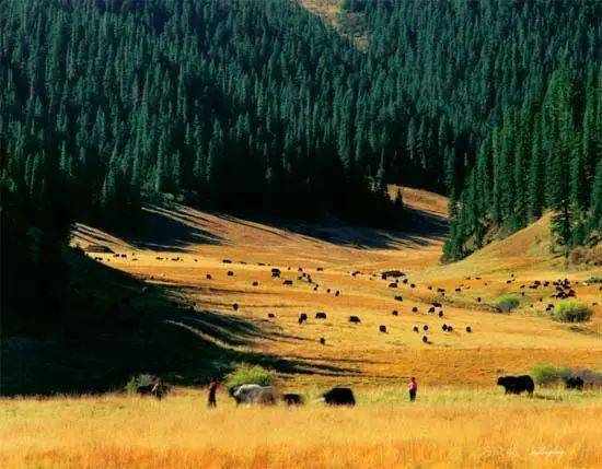河水蜿蜒于森林草地之间,鱼儿野鸭在河里嬉戏,牛羊牧人流连于草甸,有了他们,拉日马草原才更有生气!