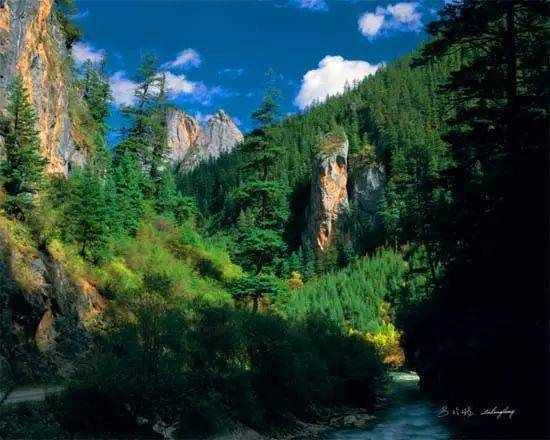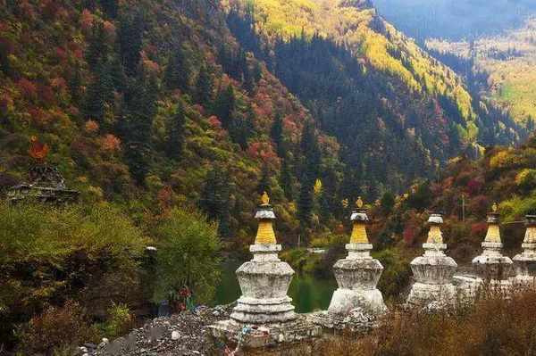 皮察沟里山水相连,不仅山美水美, 还有婀娜多姿的彩林和格萨尔王神奇的传说故事。