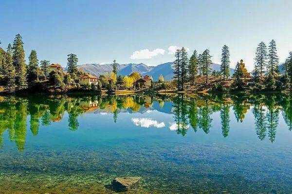 湖面平如明镜,湖水清澈见底,仿佛能洗涤心灵深处的尘埃。