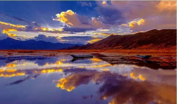 傍晚,天上仙女织好的夕阳盖在天上,措卡湖也像爱美的姑娘穿上了彩裙。