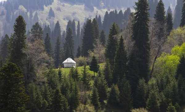 盘龙谷是一个天然的植被基因库,盘龙松,云杉,白桦林,红果树,争相竟放,五彩缤纷,时见牛羊骏马,低头啃噬山坡。