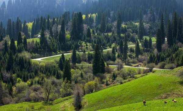 这是一条由森林、草原、山川峡谷三体合一的风景线,这里能欣赏到那拉提的草原风光,还能看到原始森林的美丽。