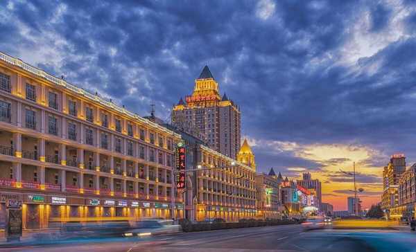 3、中苏步行街:当地知名度较高的俄罗斯风情商业街区,全是仿造苏俄的建筑风格,尤其是晚上亮灯后金碧辉煌。打卡打卡。