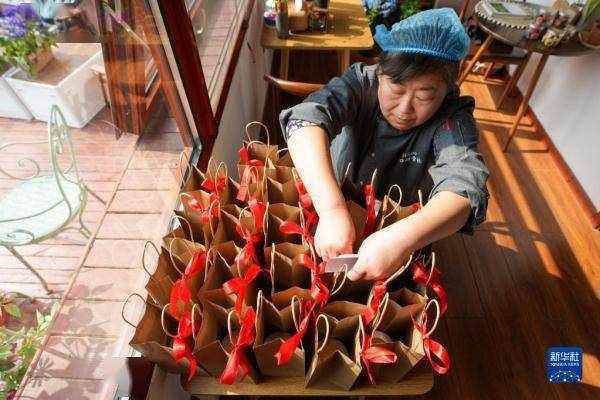 今年春节,刘甜恬的小店贴上了村民手写的店名和“打造一流甜品,助力乡村振兴”对联。店里生意一直不错,刘甜恬充满信心:“希望我们的金叵罗小米酥产品走向世界,我也能为村子发展贡献自己的力量。”