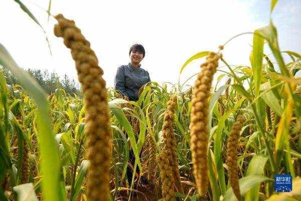 刘甜恬站在北京市密云区金叵罗村快要收获的谷子地里(2022年9月28日摄)。