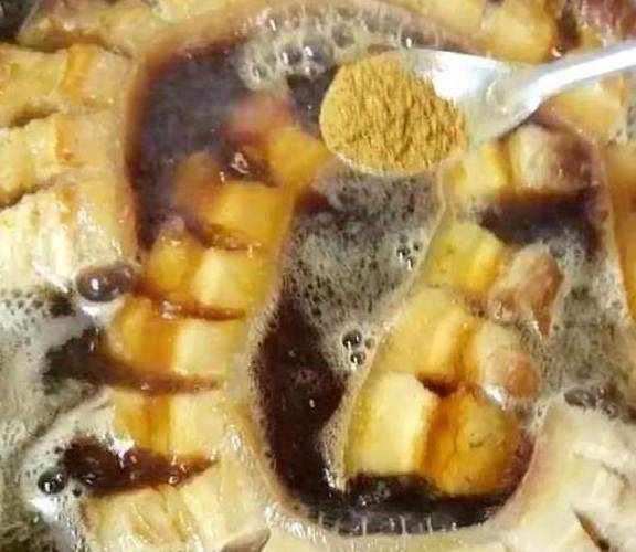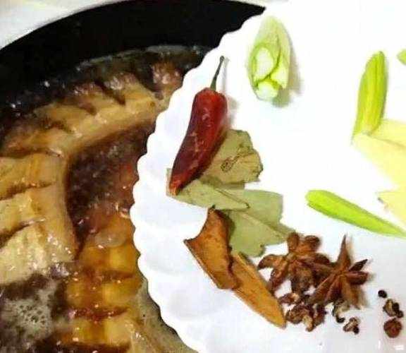 再往锅中加入香叶、葱姜、八角、桂皮、花椒。