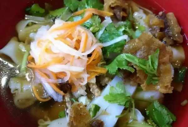 酸粉。源自宾阳县,如今正宗的连宾阳都不多了。粉裁得更宽,就像凉皮,凉拌更入味。配菜都是炸过或者干的肉,牛巴还算可理解的名称,什么波肉,什么意思?这样有很多好处:一切就吃,卖得快;摄入酸甜汁,入味快;凉拌适合天热吃,这样的肉不容易坏。