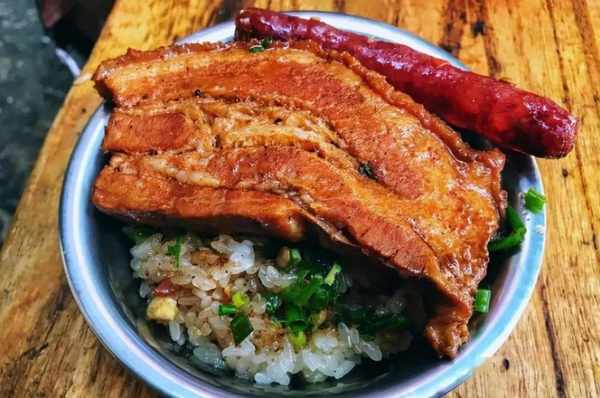 扣肉+腊肠+糯米饭大概就15元左右。扣肉肥瘦相间,肥而不腻,瘦而不柴,非常入味。糯米饭颗粒饱满,软糯醇香,套餐里还有一根腊肠,好吃便宜又实惠,性价比非常高。每天卖完为止,想吃要趁早。
