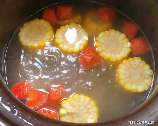 材料:胡萝卜、山药、甜脆玉米、排骨、葱、姜
