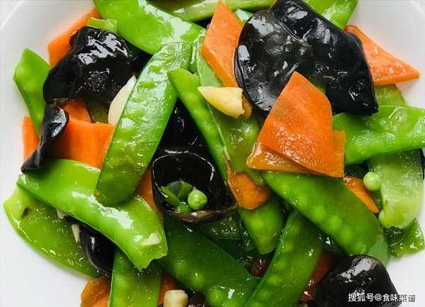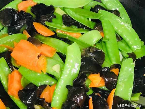 材料:葱、姜、蒜、荷兰豆、黑木耳、胡萝卜