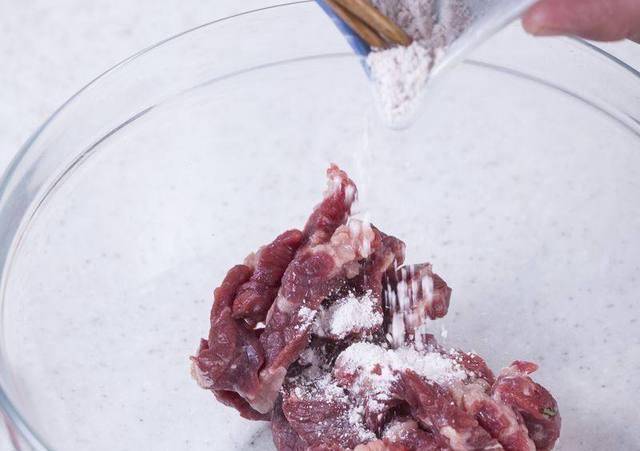 韭黄 1把、莲藕粉 1大匙、香油 1大匙、蒜末 5克、葱段 5克、红辣椒丝 5克、无骨牛小排 300克