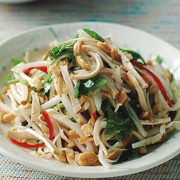 山东大白菜150克、豆干30克、姜5克、蒜头4颗、辣椒1支、香菜5克、红萝卜5克、盐味花生5克