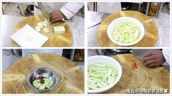丝瓜一根削皮,划开后切成段,泡在清水中。