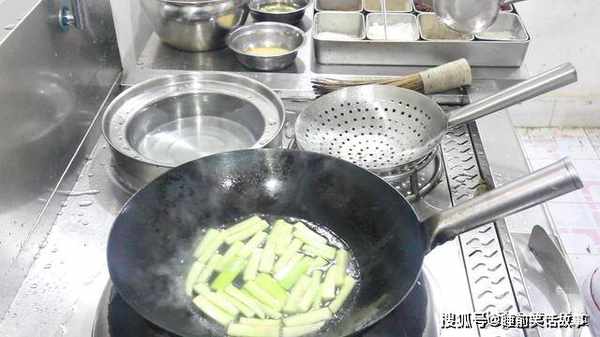 4.锅内烧水,水里加入植物油,水开后倒入丝瓜条,焯水30秒倒出,水里加点植物油的目的,是焯过水的菜能色泽发亮。