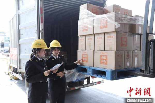 图为赣江新区海关关员助力首批南昌拌粉出口。 赣江新区海关供图