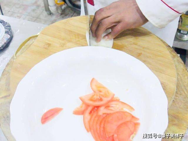 半个西红柿切成片,大葱白切成细丝,放在汤盆中待用;紫菜不用太多,把紫菜泡在温水中待用;鸡蛋两个,打散备用。
