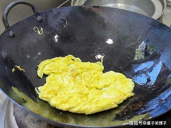 起锅烧油,油热倒入蛋液,让蛋液均匀受热,等到鸡蛋底面定型后翻面,两面煎至金黄熟透后,从锅边淋入适量的清水,加入食盐3克、鸡粉少许、白糖少许、胡椒粉2克搅拌化开调料。