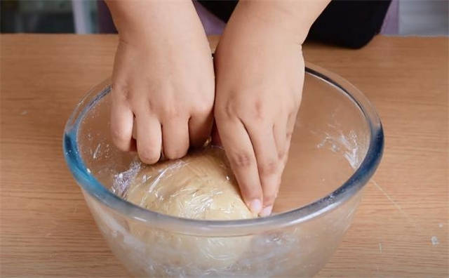 1.先做一个油皮,中筋面粉70g,倒上35g的清水,18g的花生油,揉上3-5分钟,就能到这种光滑的程度了,用保鲜膜密封好,饧上20分钟。