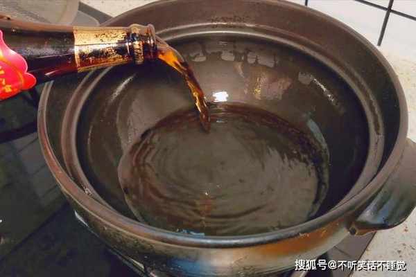3、准备一个砂锅,不用放水,而是倒入一瓶黄酒,酒量要没过肉块,二斤肉可能需要一瓶黄酒,花雕酒比较有年份,也属于黄酒系列。