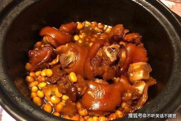 7、软糯清香的黄豆炖猪蹄就做好了,看着就很有食欲,烹入少量醋可化解油腻,猪蹄软烂Q弹,黄豆清香美味,还有满满的胶原蛋白,戴上手套开始啃吧,香香的超级入味。
