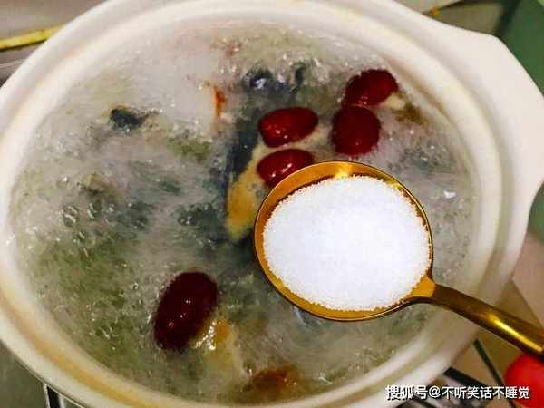 6、再根据个人口味,少来一点食盐,别放太咸了,临出锅之前,提前十分钟,可以再来一点枸杞,炖一个小时左右,就差不多了。