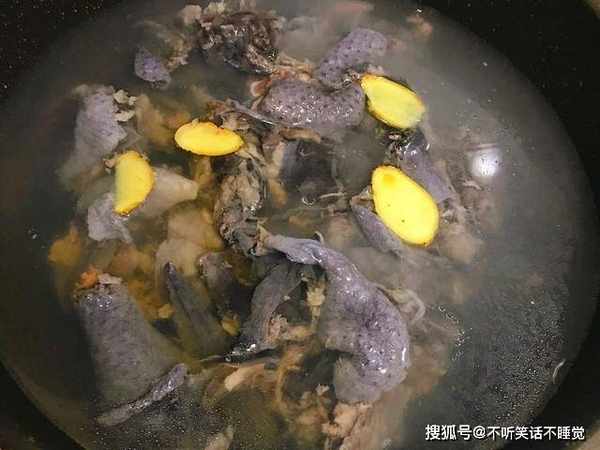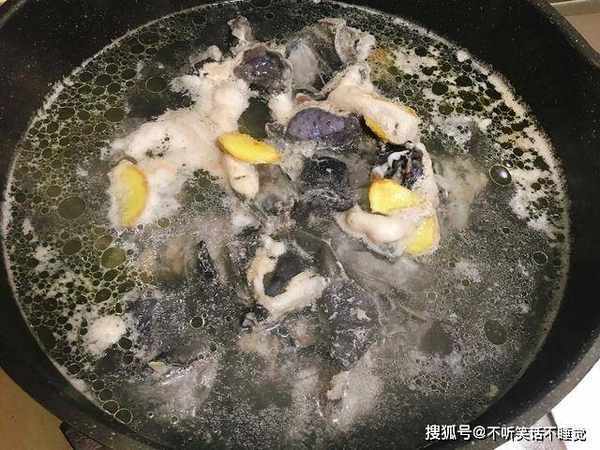 3、上面飘的浮沫,是乌鸡的血水、杂质以及部分脏东西,这个要及时撇掉,粘在肉上,很难处理,撇干净以后,捞出来冲洗干净。