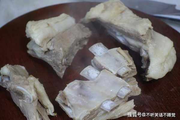 2、羊排焯水,一定要冷水下锅,随着温度升高,逐渐释放血水杂质,不可开水放入,水开后会有浮沫,要及时地撇去,这是腥膻味的来源,撇的越干净越好,沸腾几分钟后,捞出肉块冲洗干净,控干备用。
