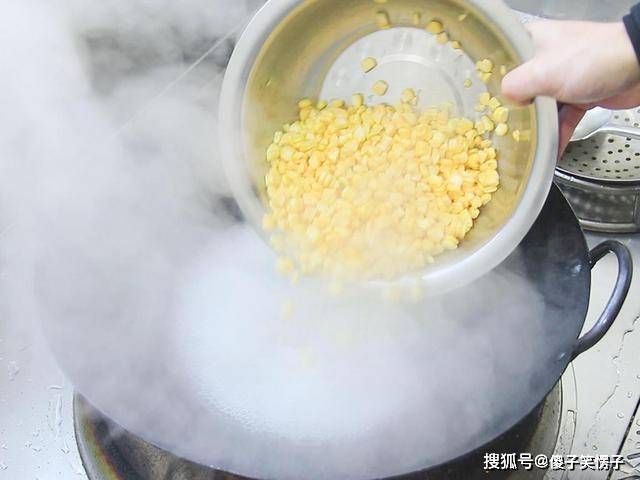 锅内烧油,加一点食盐和鸡粉入底味,淋点植物油锁住营养,把玉米粒倒入锅中煮3-4分钟,玉米断生以后倒出来控水。