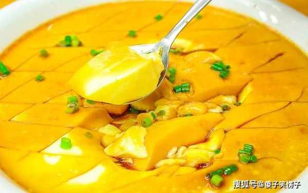 蒸锅中上大气以后把蛋液放进去,中小火蒸6-8分钟就可以了,蒸到第4分钟的时候掀起一次锅盖放放气,这一步也能有效防止形成蜂窝,然后取出鸡蛋羹,揭掉保鲜膜用刀切成小块,淋上适量的生抽、芝麻香油,撒上葱花,美味即成。
