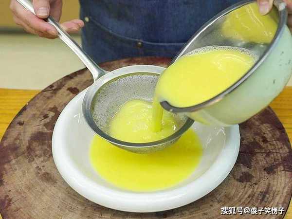 撇去上面的气泡,再用密漏过滤一下,然后把蛋液用保鲜膜封住,再用牙签扎一些小孔方便蒸汽流通。