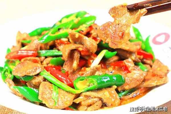 然后把浸泡好的猪肝充分洗干净腌一下:加入一勺食盐入底味、一小撮淀粉锁住水分,放一边腌上三五分钟。锅内烧油,油温4成热时,倒入腌好的猪肝快速滑炒10秒钟、立马倒出来控油,提前滑油便于快速炒熟、